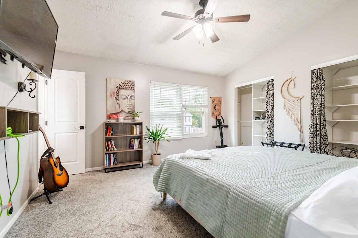Have fun with the whole family at this stylish place. Comfortable, clean updated downtown Fairborn home minutes to Wright, Patterson, Air Force Base, Air Force Museum and Wright state university. Enjoy your stay in a comfortable living room with large screen tv. Two bedrooms with a queen and a king bed that’s an adjustable bed. A kitchen with everything you will need to have breakfast, lunch or dinner. Home has central ac/heat and ceiling fans in living room and bedrooms.