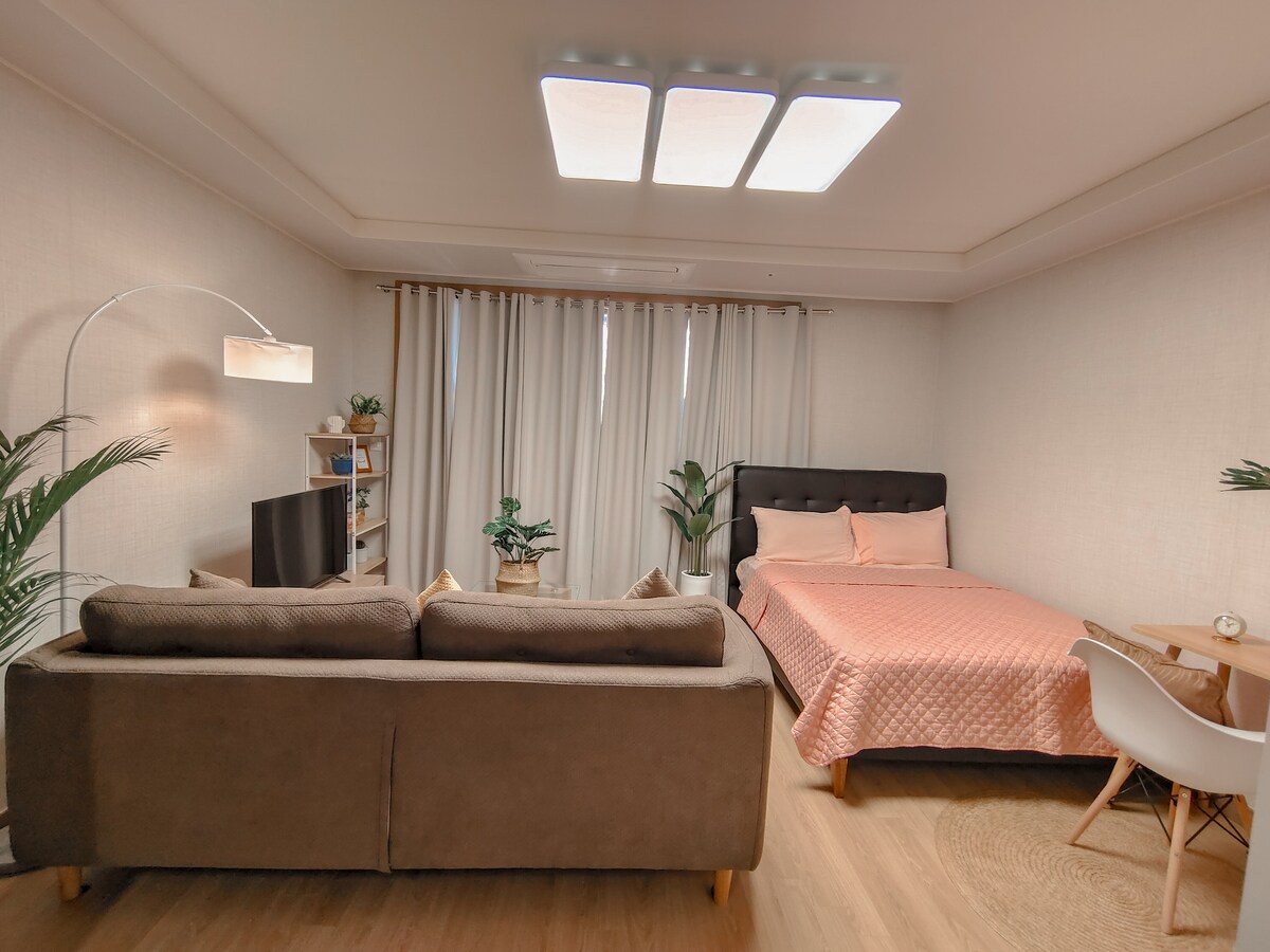 Find your perfect getaway in the Clark Freeport Zone! Our spacious 40sqm, pet-friendly studio is a serene retreat. Nestled in a quiet, low-rise condominium with distinct Korean-inspired vibes, it's located just steps from the Hilton. Comfortably sleeps 4 with a queen bed and a sofa bed. Enjoy the convenience of a full kitchen, an in-unit washer, and essentials provided for a hassle-free stay. You're minutes from adventure: explore the lush Clark Parade Grounds or make a splash at Aqua Planet!