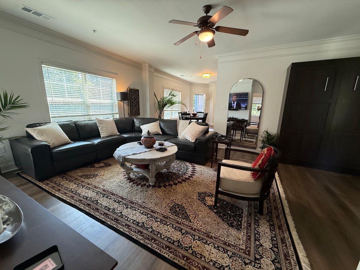 Step into luxury at The Flagship; 2,400 sqft apartment home in the center of downtown Athens. It's nestled in the historic Charles Parrott Building, just across from the UGA arch. This large apartment is a tribute to the city's rich history and vibrant culture. Each room, adorned with bespoke artwork by local artisans, invites you to immerse yourself in Athens' academic, architectural, musical, and artistic legacy. Book your stay now and experience the essence of Athens at The Flagship.