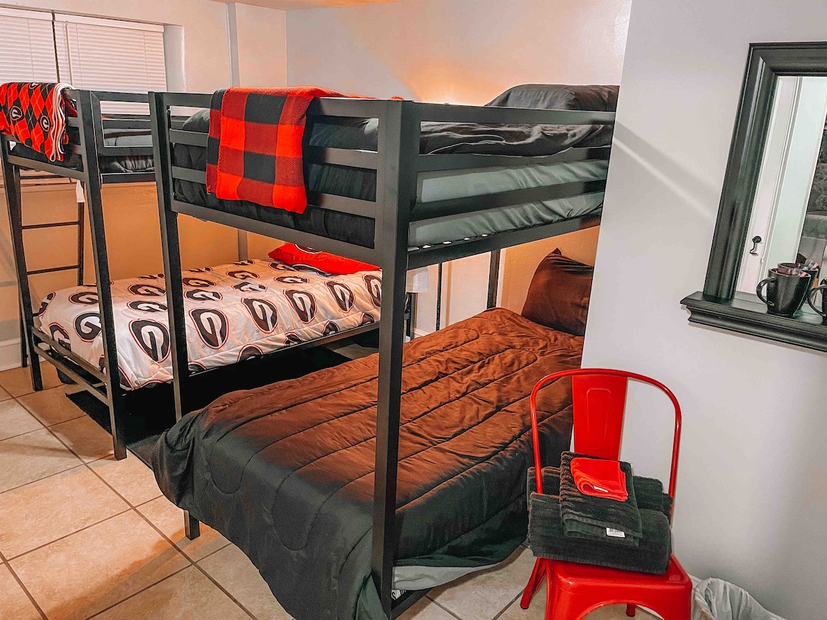 This comfy 5 bedroom, 3.5 bath cottage has been completely renovated in 2020. In the main house there are 4 bedrooms and 2.5 baths + living room, kitchen, and spacious back patio. Access to bunkhouse with bunkbeds + trundle + full bathroom is available for an additional $50 per night by messaging when you reserve. 4 block walk to DT Watkinsville. 6 mi. to Sanford Stadium: this is the perfect location for rest & relaxation.