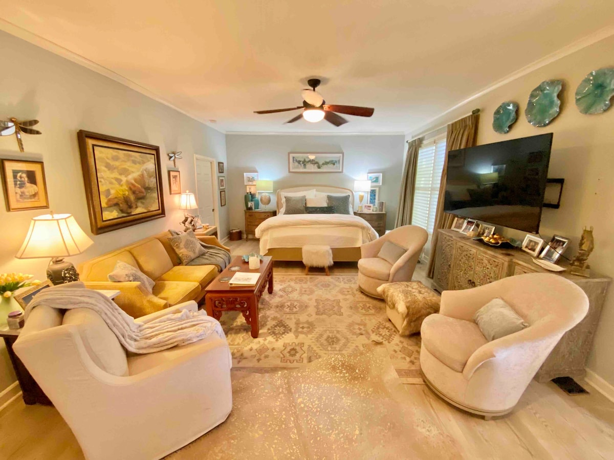 Nestled in the heart of a quiet neighborhood, this one-bedroom Southern shotgun house brings the charm of the South into the modern age with a 90s-inspired blues twist. Step inside and you're instantly transported with music and contemporary design. Vintage records line the walls, and soft, ambient lighting sets the perfect mood for unwinding or hosting friends. This home isn’t just a place—it's an experience.