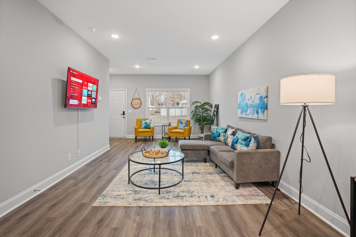 Discover Clarksville from our Cityscape Sanctuary, which is perfectly located in a tranquil neighborhood just minutes from essential shopping, dining, and parks. This home is fully equipped with a modern kitchen featuring an Air Fryer and a Hamilton Beach Flexbrew coffee maker, and each bedroom comes with a smart TV. Ideal for those who seek a perfect mix of peace and local culture, our place includes two parking spaces, welcoming families or groups. #StylishEscape #MemorableMoments
