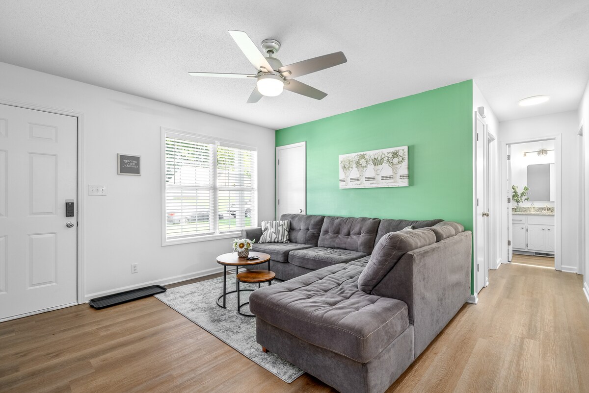 Kick back and relax in this calm, stylish space. With 2 living rooms & an outdoor living area, there will be plenty of space for you to spread out and get comfy. New 65" Smart TV & long comfy couch - perfect for movie nights with the whole group! Local Attractions- 5 miles from Downtown Clarksville (~10min) 15 miles from Fort Campbell (~30min) 45 miles from Downtown Nashville (~45min)