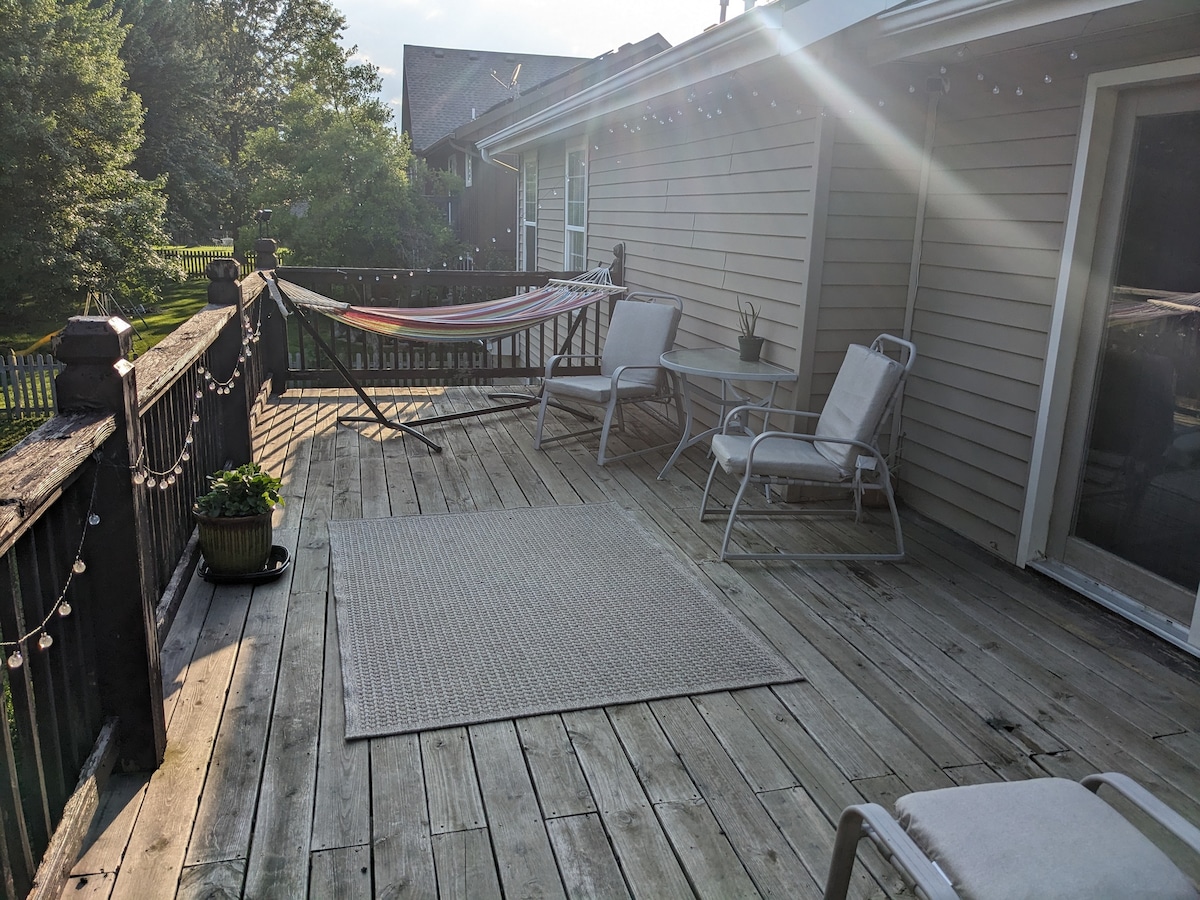 The whole group will be comfortable in this spacious and unique space. Peaceful space in the valley where a rooster crow is all you hear in the morning. Have coffee on the dock while feeding koi in the koi pond! Off the beating path of traffic. Short drive to I 435 and I 35. About a half hour drive to Royals and Chiefs stadiums, downtown KC and Kansas speedway! Minutes from the bike and walking trails that circle Smithville Lake!