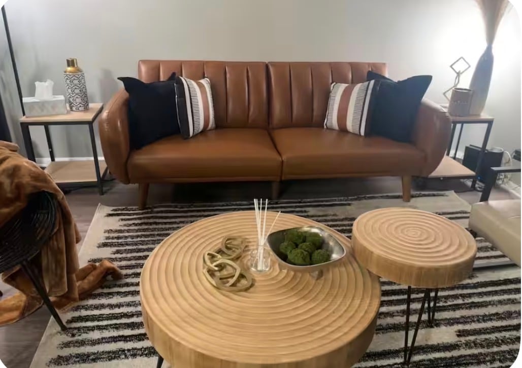 A 125-year-old bungalow packed with personality. Inside you’ll find curated worldly décor, many lounge spaces, and the house’s most famous feature: the Lucky Kitty Tiki Lounge, a hidden bar built inside the old garage. Outside, relax in the barrel sauna, cold plunge, and stock tank pool, gather around the fire pit, and unwind under the string lights after a night exploring Kansas City. It’s a one-of-a-kind stay just minutes from downtown, the stadiums, and some of the city’s best restaurants.