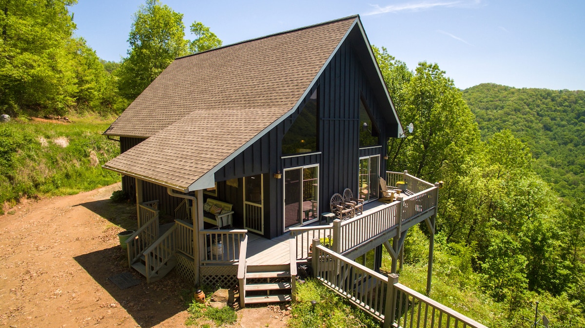 Take in the beautiful views of the Western North Carolina mountains from any side of the large wraparound porch. Spend your mornings sipping coffee, watching the sunrise, and letting the air wake you up in peace. Finish your day rocking away to the sunsets. This Cozy 3-bedroom cabin home has everything you need to host a family or friend adventure to the mountains. With gated access, you'll enjoy only the sounds of the stream nearby and the nature during your stay.