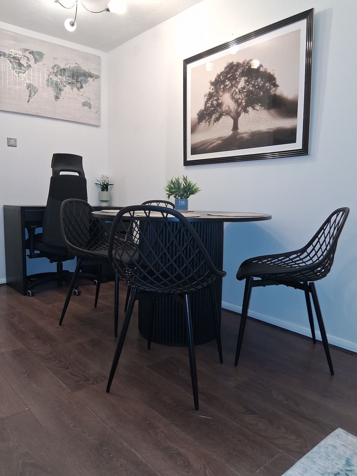 Overlooking the fields, this luxury top floor space invites you to unwind. Ultra-clean, peaceful and beautifully styled. Equipped with everything you need and more. Brew fresh bean-to-cup coffee with the Ninja Luxe Coffee Machine. Stream your favourite shows on the Smart TVs, play board games as a group or work where the view inspires you. Whatever the purpose of your stay, working or relaxing - this is the place to be! London is close by, but feels like a world away. Always a place to park too!