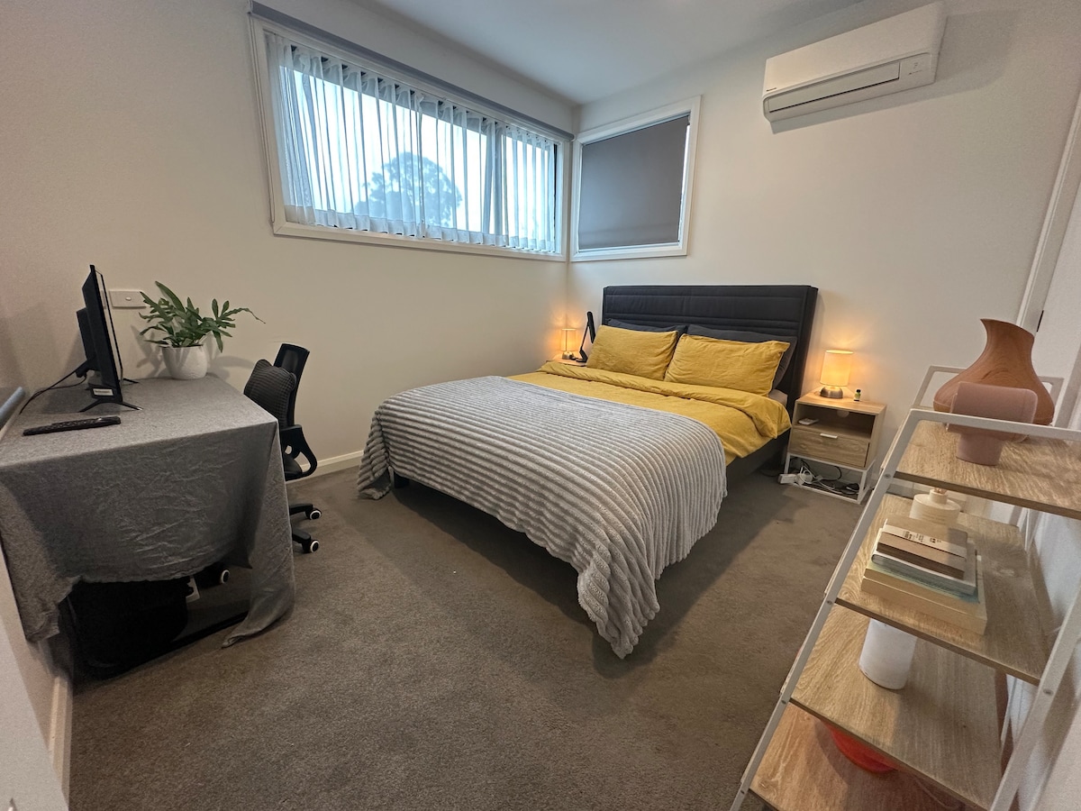 - A fully furnished studio with a big window, split system aircon, smart TV, washing machine, and brand new en-suit bathroom - Equipped with a small area for warming up food and simple cooking - Part of the main house with separate entrance - Close proximity to café, bakery, restaurant (1km), Ikea (1km), M-City shopping centre (1.5km), Monash University (2.6km), Springvale station and shopping centre (7’ drive), Chadstone shopping centre (13’ drive), and 4-7' walk to bus stops 631, 800, 902.