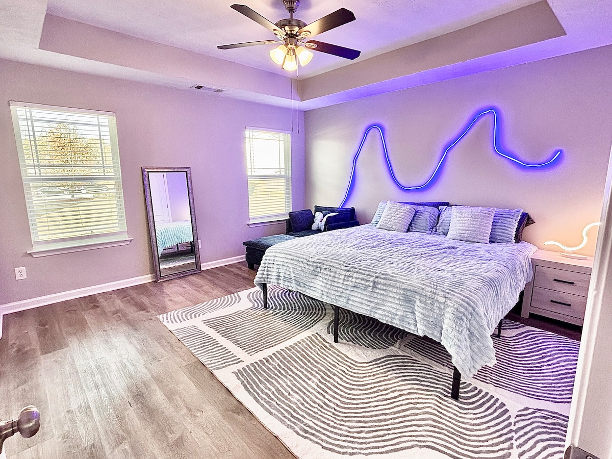 WELCOME to your new favorite ATL space: Spacious 3-BEDROOM/3 BATH. Designed for Comfort, Convenience, and Enjoyment. ⭐️70 inch HD streaming 📺 TV (Netflix, YT, Hulu) ⭐️Master bedroom suite w/King size bed ⭐️2x Huge Bedrooms w/Queen Size Beds ⭐️Espresso machine ☕️ ⭐️Pool Table🎱 ⭐️ Huge Tranquil Backyard w/Patio seating ⭐️🕹️ Arcade Games- 3 games in one ⭐️Safe, Quiet & Stress free ⭐️Contactless Entry/Self Check-in ⭐️Close proximity to ATLANTA Attractions ⭐️24/7 Support Team/Co-Host/Assistants
