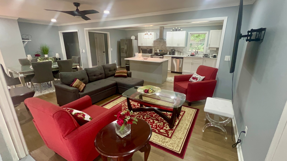 This is our charming farm style house located in Fayetteville Ga/ metro Atlanta. The house has a open ranch layout and sits in a quiet neighborhood perfect for a relaxing getaway. It is fully equipped for comfort with 3 kings sized beds and a large sectional couch, this is perfect for families, gatherings, and work/long stays. Fayetteville is a great location for a break from the city life, but only 35 minutes from downtown Atlanta and 15 minutes from Atlanta Airport.