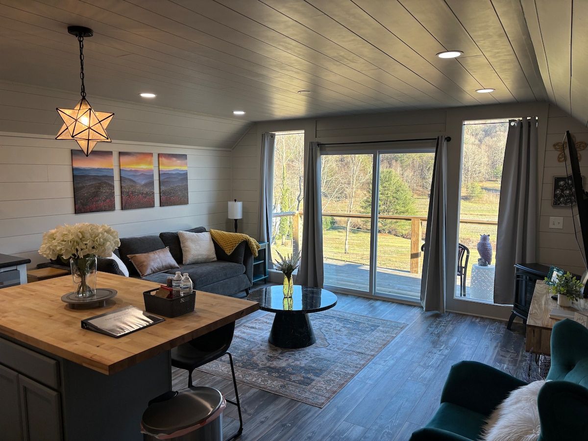 Perfect get away, this 820-sq-ft creekside cabin blends 1950s charm with modern comforts—two queen bedrooms, a bright kitchen, and a relaxed living room. Step onto the back porch or creekside patio for slow mornings and sunset chats, then wander 5 minutes to downtown Clayton for dinner, craft drinks, and dessert. Afterward, slip into the hot tub under the stars. Trails, waterfalls, whitewater, and Black Rock Mountain vistas are minutes away.