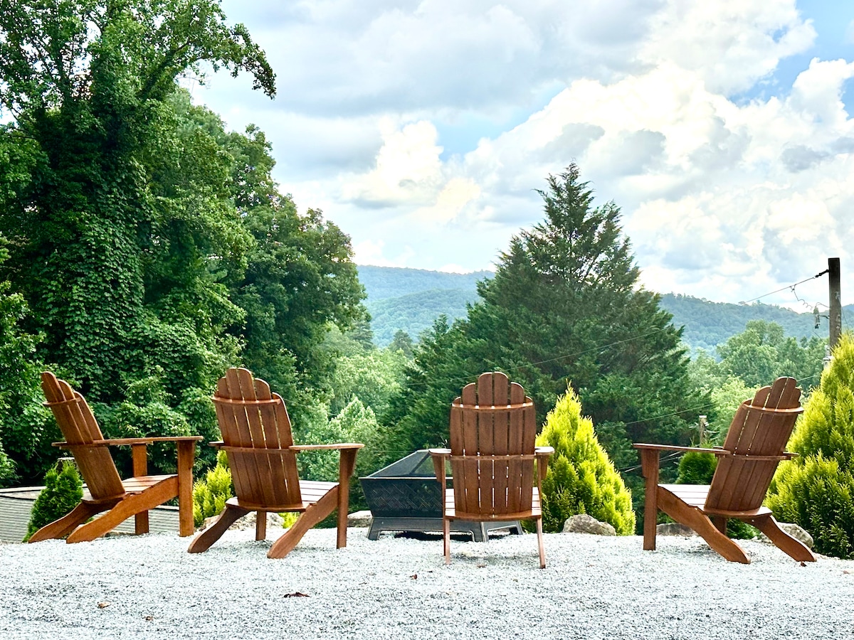 This custom home, built in 2020, is the perfect spot to unwind. Located off of a private road (4-wheel drive isn't necessary), it sits on 4.25 acres, w/gorgeous views of the Great Smoky Mountains. Once there, you truly feel removed from the world. Its modern, Scandinavian-Japanese design is unique to the area. Includes: master bedroom, sleeping loft (queen-sized futon and custom Twin XL bunk beds); open kitchen/living area, covered and open patios. 10 minutes from Bryson City and Cherokee.