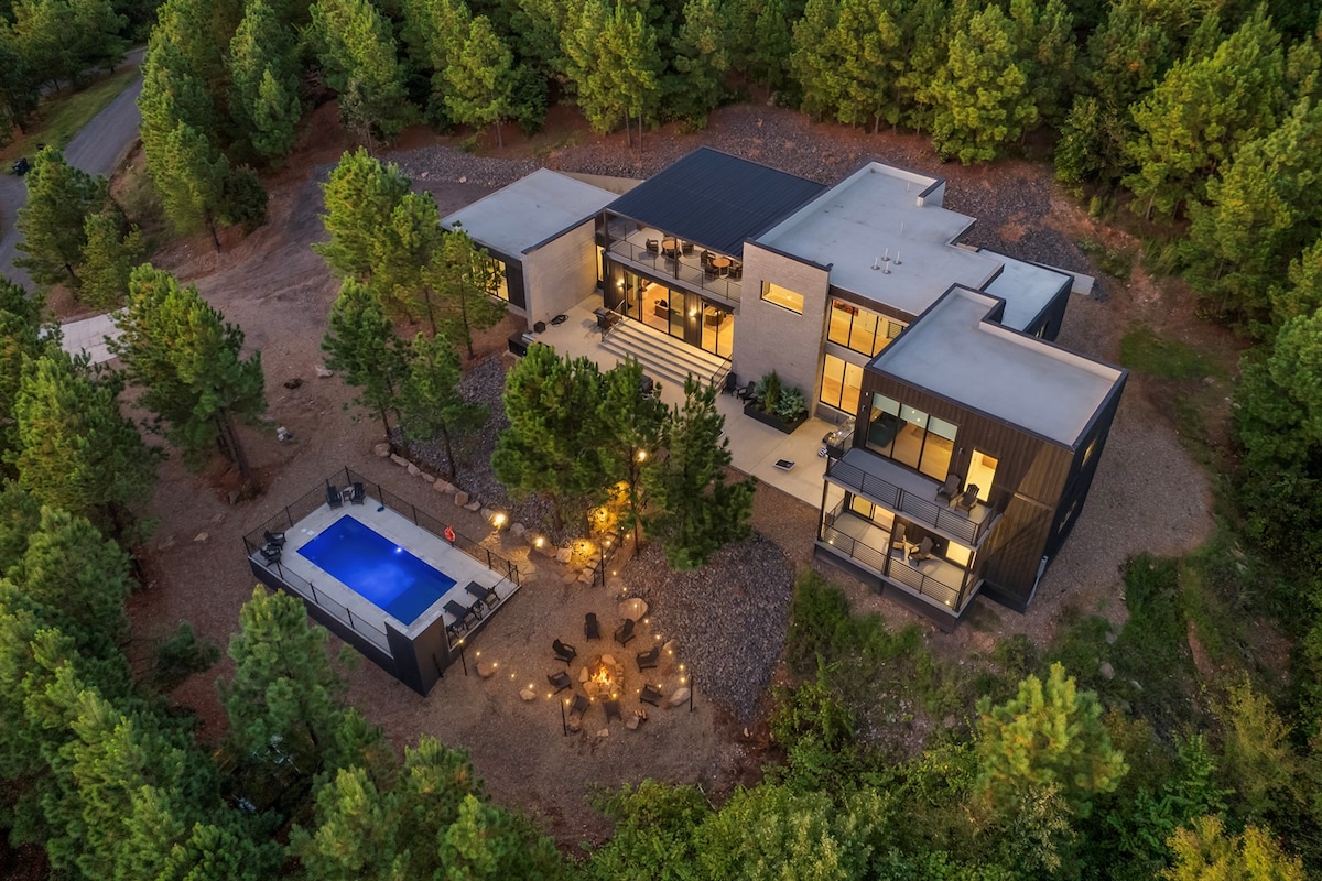 • Breathtaking panoramic views from every window & all 4 private patios • Private swimming pool + hot tub under the stars • 4 king suites, each with spa bathroom & direct pool access - perfect for couples • Complete seclusion on 1.5 wooded acres with deer, wildlife & pine forest serenity • Chef's kitchen, outdoor firepit & covered BBQ deck for effortless entertaining • 10 mins to Hochatown yet worlds away from the crowds • Impeccably maintained luxury villa - spotless & thoughtfully designed