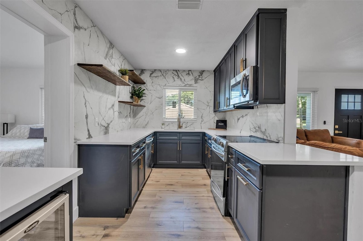 Steps from Main Street Dunedin, a short walk to the waterfront and an easy drive to award-winning beaches such as Honeymoon Island & Clearwater Beach. Experience the charm of the Barefoot Parrot House, a private pet friendly house with designer decor and abundant outdoor space. Walk, bike, or cart to stunning sunsets, quaint shops, dining, breweries, and Pinellas Trail. Great for families, couples, groups. Loaded with beach gear, kids's items & pup supplies. Treat yourself and be our guest!