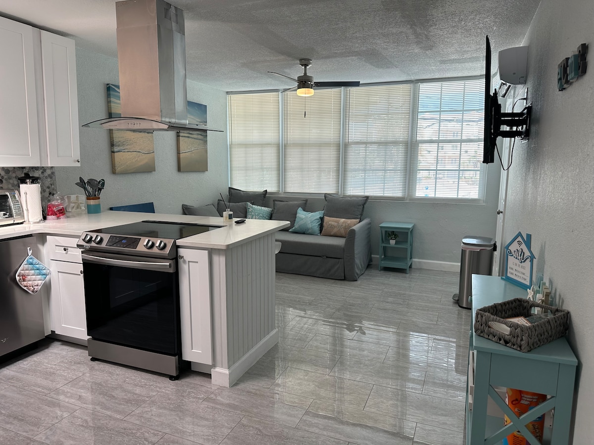 A freshly remodeled beachfront condo with a coastal look. This stunning condo features modern coastal decor, with bright colors, beach-inspired accents, and panoramic views of the ocean. This wonderful condo has a private balcony allowing for the enjoyment of the sea breeze and stunning sunsets. The central location between Clearwater and St. Pete provides easy access to nearby restaurants, shops, and entertainment options, making it the perfect beachfront retreat for relaxation and leisure.
