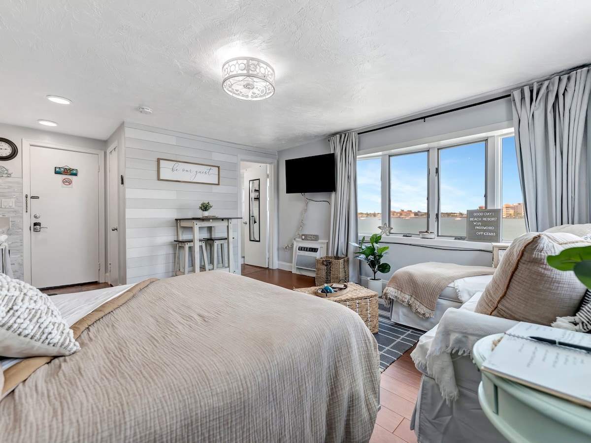 Wake up to stunning waterfront views! Unwind in this bright studio overlooking Boca Ciega Bay, sip coffee on your private balcony while watching dolphins. Highlights: • Direct waterfront views from balcony • Heated pool, spa & fitness center overlooking bay • Minutes to Madeira Beach, St. Pete, & War Veterans’ Memorial Park • Cozy king bed • Close to boat rentals, trails, and waterfront dining Perfect for romantic getaway or peaceful solo escape!