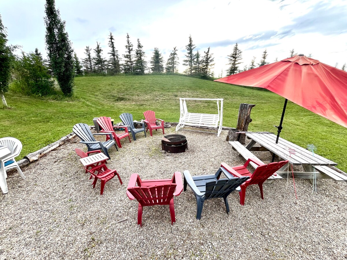 Come stay in the coziest little cabin! Located in the heart of the Alberta foothills on a working ranch, Cabin 3 provides the best cozy getaway for couples or a family of 4; with 1 queen bed + single bunks. (see photos) Hike, swim, fish, hot tub, sauna, or simply have a fire and relax! Unplug and unwind away from the city in our favorite place on earth. ~1.5 hrs from Calgary ~2.5 hours from Banff ~3 hrs from Edmonton