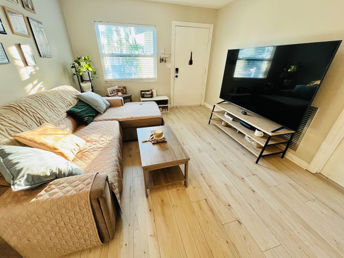 Welcome to our cozy unit! Minutes away from Clearwater Beach where you'll have easy access to all the attractions and activities that the area has to offer. The unit is fully equipped with all the amenities you need for a comfortable and relaxing stay, including a fully stocked kitchen and laundry within the unit, an inviting living room, spacious bedroom and a modern bathroom. We look forward to welcoming you to our unit and helping you have a wonderful stay in Clearwater!