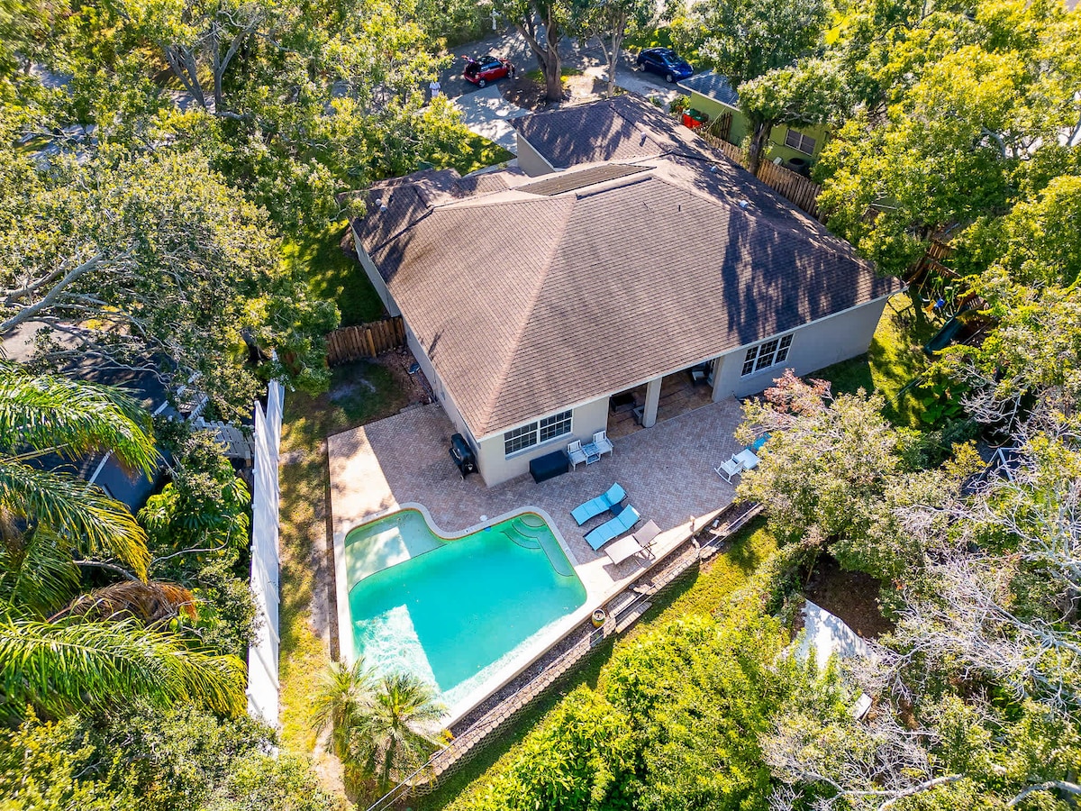 Lots to Love about this centrally located Clearwater beauty. This pool home is 25 minutes from the Tampa airport and 15 minutes to famous Clearwater Beach and less than a half hour to downtown St. Pete, not to mention a 10 minute walk to Phillies spring training stadium and minutes by car to hundreds of Shoppes and Restaurants. Enjoy this spacious home with split bedroom plan and brand new furnishings. Sweet dreams on the Casper mattresses. Relax Poolside in the screened lania or by the firepit