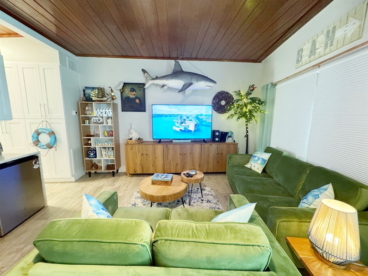 Step back in time at Postcard Paradise, a charming beachside cottage that captures the magic of Old Florida. Nestled just steps from the shore, our eclectic retreat feels like living inside a vintage postcard. Sun-faded colors, and tropical murals set a nostalgic mood, while modern comforts keep things easy and relaxed. Each cozy room is filled with hand-picked decorations, breezy linens, and quirky coastal finds, creating a one-of-a-kind space where every corner tells a story.