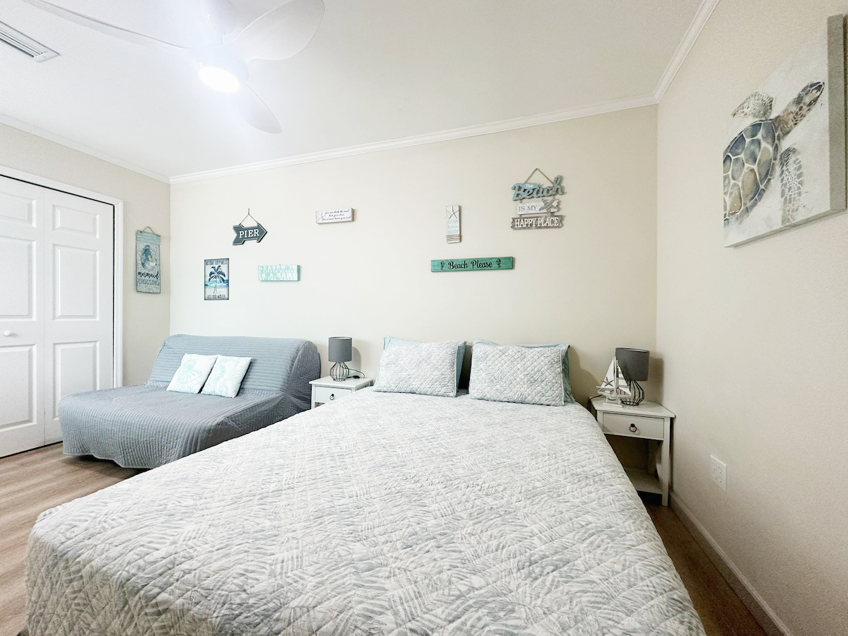 Welcome to our cozy guest suite—where comfort is personal over perfect, and full of charm you won’t find at a hotel. Guests love the thoughtful touches, eclectic decor, cloud-like bed, and the irreplaceable feeling of being at home when you’re far from home. Our home uses one central AC unit. Because Florida is warm and humid year-round, we keep the thermostat at 70°F by day and 67°F at night for proper cooling and comfort. If you prefer more warmth, two space heaters are in the suite closet.