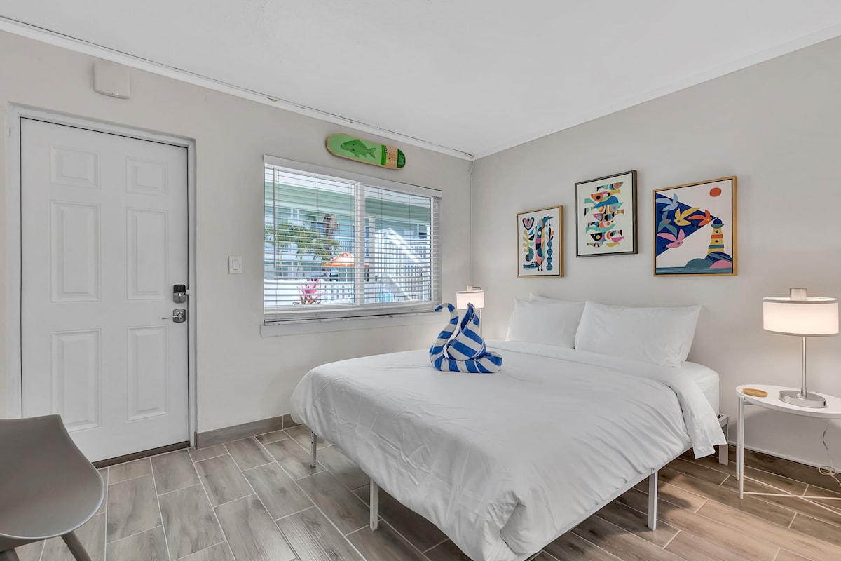 Tropic Terrace Suite #49 — Renovated Studio with Pool View & Sunset Balcony Pool-Facing | 2nd Floor Suite | No Elevator Welcome to Suite #49 at Tropic Terrace Resort — a fully renovated second-floor studio that blends modern comfort with beachside charm. Located in peaceful Treasure Island, this 265-square-foot unit sleeps 3 and offers the perfect getaway for couples or small families seeking rest, recreation, and unforgettable sunsets.