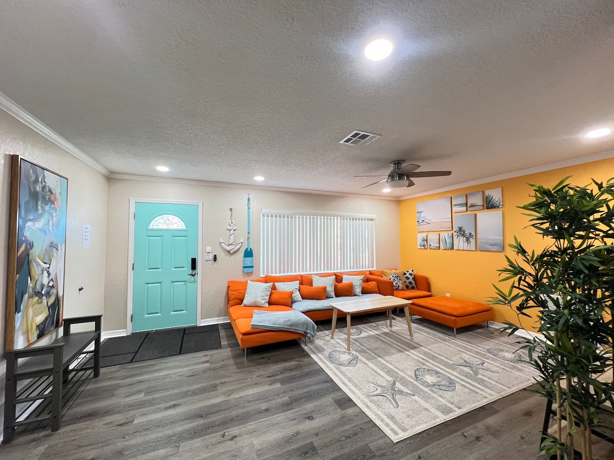 平均评分 4.82 分(满分 5 分),共 198 条评价2025年翻修 - 复古海滩绿洲,色彩碰撞