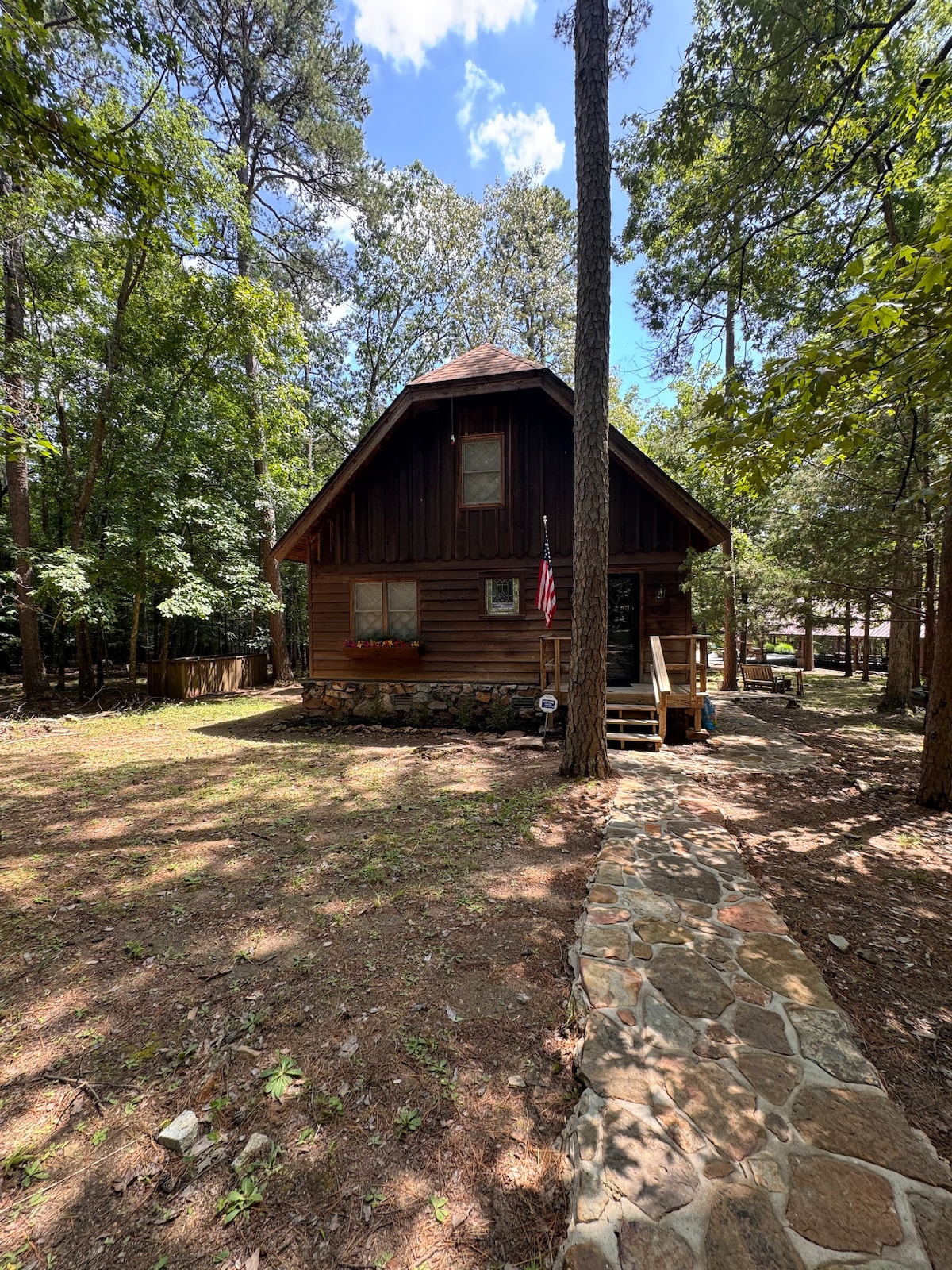 Our cabin is on Greers Ferry Lake. It is a lakefront log cabin property! You’ll love our cabin because of the coziness, fully-furnished bathrooms/kitchen/laundry area, the comfy beds, authentic log home experience and the easy water access that is great for swimming, fishing, or sitting in the shade. You will also love the spacious den that is rarely found in lakefront properties. Our cabin is good for couples, families, big groups, friends, and furry friends (pets).