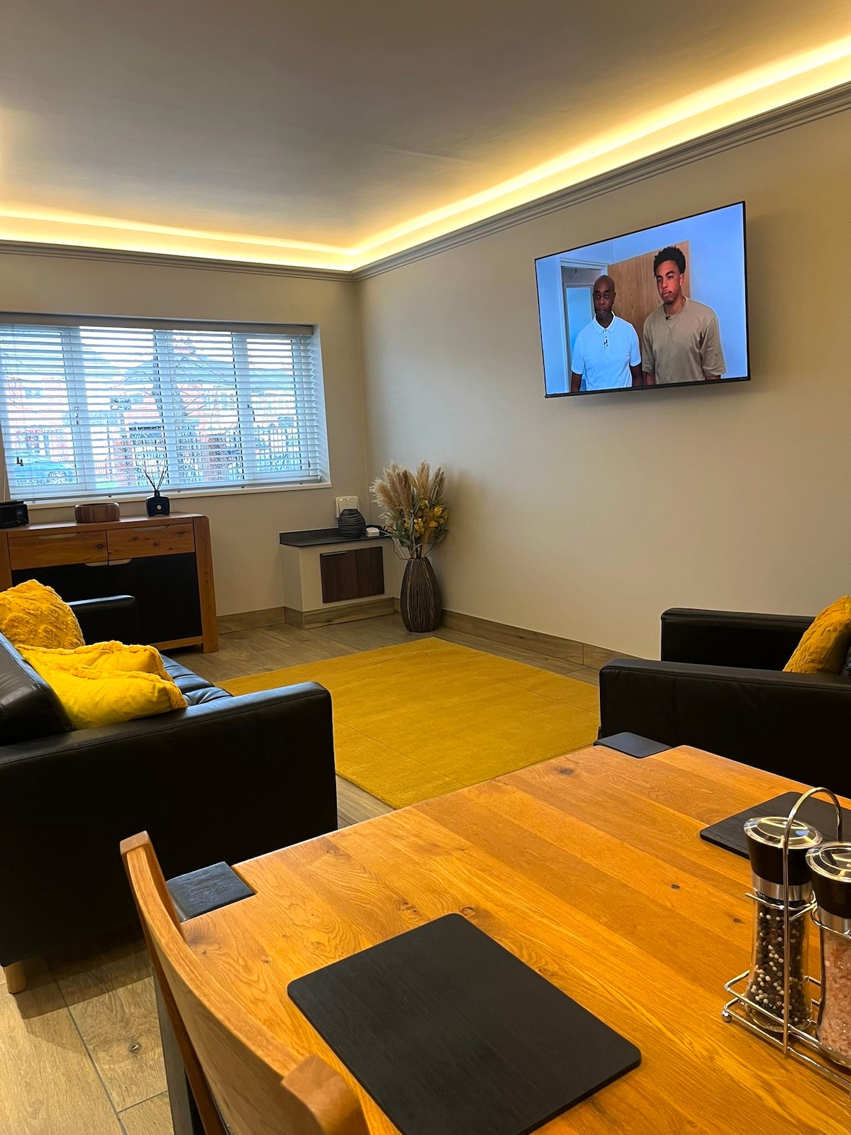 Spacious 2-bedroom, 2-bathroom apartment in New Waltham, near Cleethorpes, perfect for contractors. Just 12 minutes to Grimsby Port, 18 minutes to Immingham, and 23 minutes to Killingholme. Features include a fully equipped kitchen, 65" 4K Smart TV, en-suite shower, bath/shower, fibre optic internet, and a work desk. Located in a quiet area, 5 minutes drive to the beach, with shops and restaurants nearby. Ideal for a comfortable, peaceful stay.