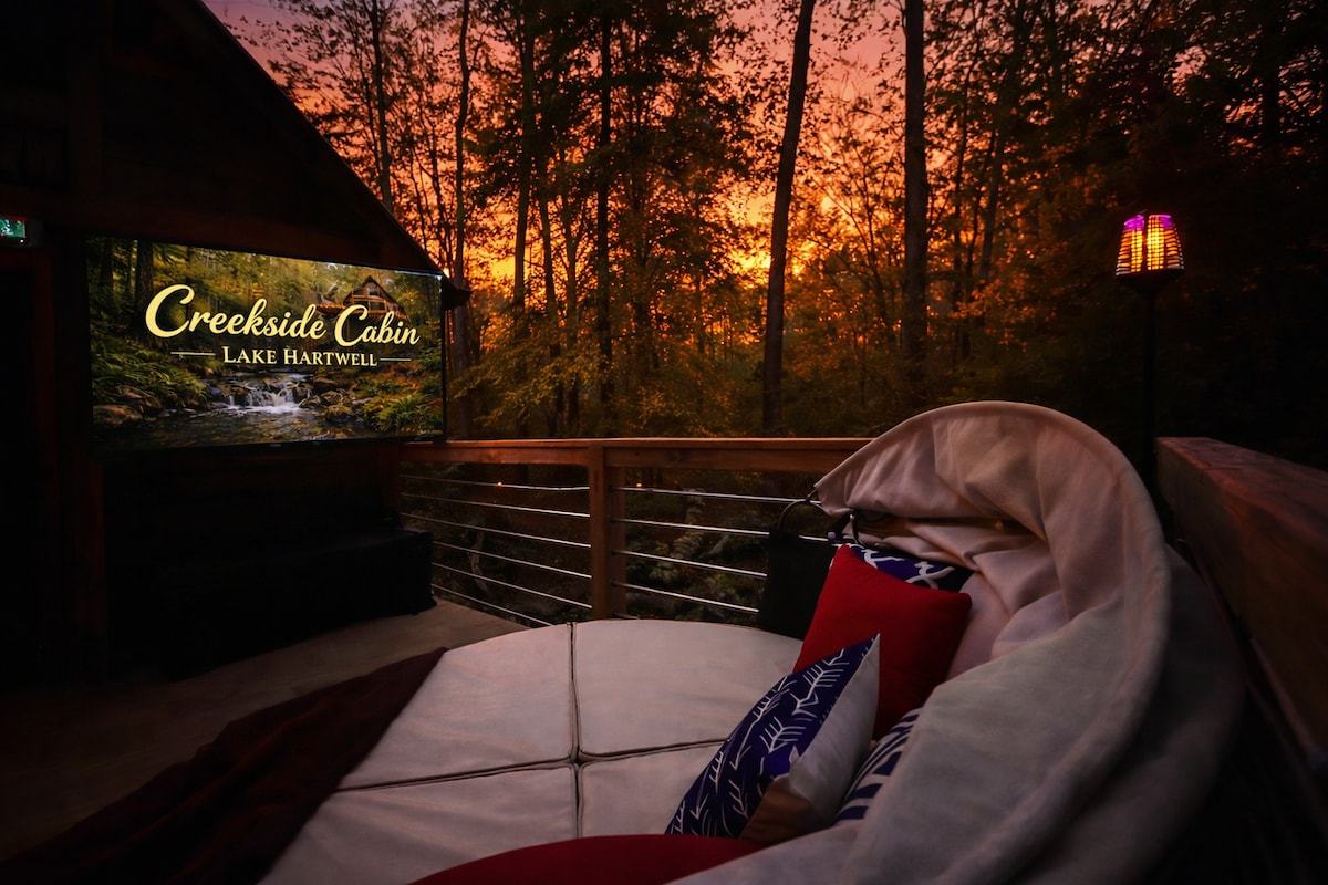 Tranquil Chauga River Getaway offers a clean, safe, quiet retreat on beautiful Chauga River. There is a private dock that offers fishing and access by boat to Lake Hartwell. Multiple private decks provide river views, as well as, wildlife like ducks, blue herring, birds, and the occasional beaver. Private, dead end road access means minimal traffic. Area provides activities like waterfalls, hiking, kayaking, cycling, mountain biking, fishing pier, rafting, sightseeing, etc.