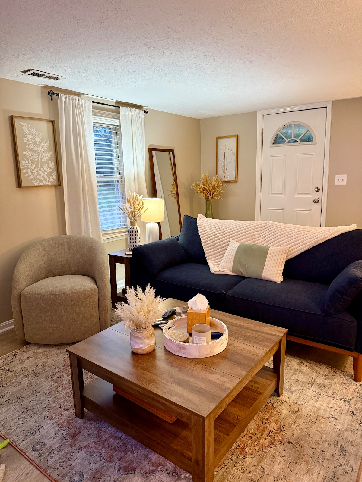 When you arrive, take some time to relax in the hammock chairs while you unwind as you look over the woods below. Since we are 8min away from i71, and 5min from the 275 loop, all of Cincinnati is within close reach! (Kings Island= 15min, Downtown Cincinnati= 26min) *You WILL hear life happening from above on the upper level (*our two-year-old typically wakes up around 7am*) since this unit is attached to our home *You must walk down a stone step path in order to access your unit