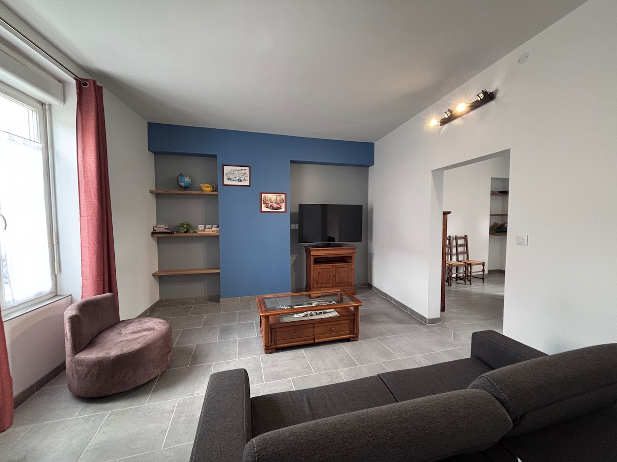 Les volets bleus | Maison à deux pas du circuit | Terrasse | Jardin arboré | Maison individuelle lumineuse entièrement rénovée dans un style moderne et doux, située dans le centre de Ruaudin, à 5 minutes du circuit des 24h et 10 minutes du centre ville du Mans. Elle bénéficie d'un accès privé, d'un garage couvert et grand jardin arboré clos. Idéal pour un séjour détente en famille ou entre amis!