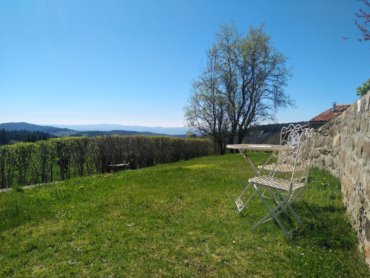 Besoin de Nature, de vous ressourcer seul ou à deux ? Cet hébergement élégant et confortable à l'ambiance zen dispose d'un jardin-verger clos. Entre un lac et les hauts de Chaumes du Forez, à 25 mn de Thiers, capitale de la coutellerie et non loin du parc des Volcans d'Auvergne. Calme, détente, découverte de la région au cœur du Parc Livradois-Forez. Animations estivales : Festival de théâtre de rue, de musique, Festival de BD, marchés locaux, fêtes patronales, restaurant gastronomique, etc.