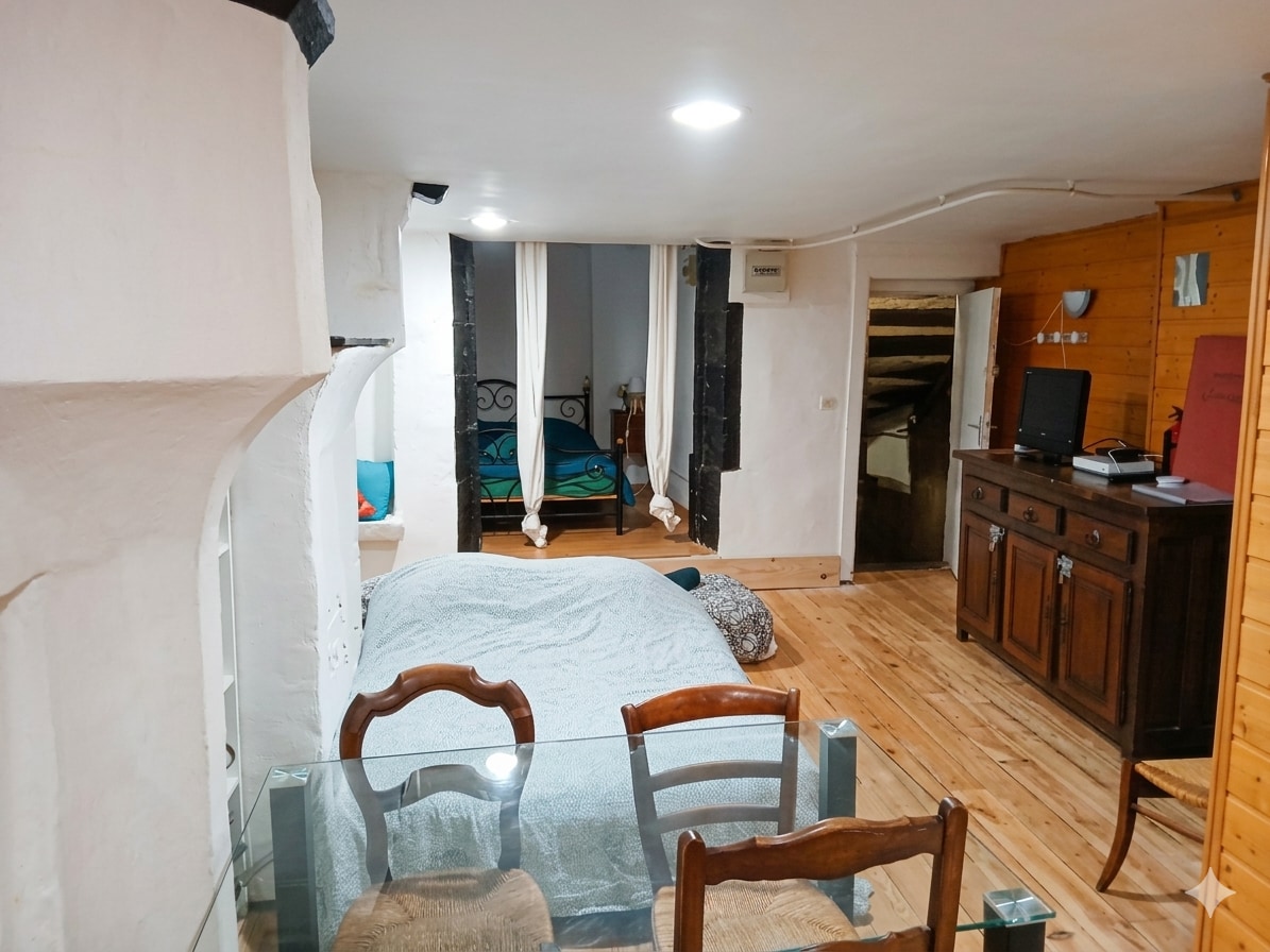 Nid douillet privé en entresol dans ancien hôtel rénové au cœur du village en desertification de Rochefort Montagne idéal pour randonnée, ski, et découverte de l'auvergne, du Sancy et de la chaine des puys. Baignoire à remous, climatisation, lit Emperor (2x2m), Matelas EMMA sur lattes, cuisine toute équipée avec lave vaisselle, four, four micro ondes, batterie d'ustensiles, fondue, crêpe, raclette, feux gaz et plaques induction, réfrigérateur SMEG, lave linge, sèche linge, TV LG