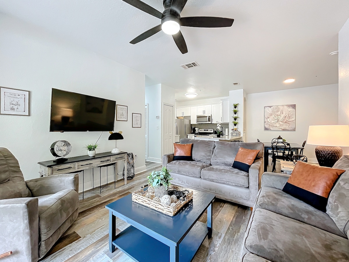 Step into our freshly remodeled, cozy 3-bedroom condo—designed with families in mind and just minutes from the enchantment of Disney! Nestled in a quiet, semi-forested area, it offers the perfect retreat to relax and recharge after a fun-filled day at the parks. Enjoy all the modern comforts in a beautifully updated space with stylish touches throughout. Unwind by the resort-style pool, fire up a meal at the charcoal BBQ picnic areas, or lounge under shaded umbrellas.