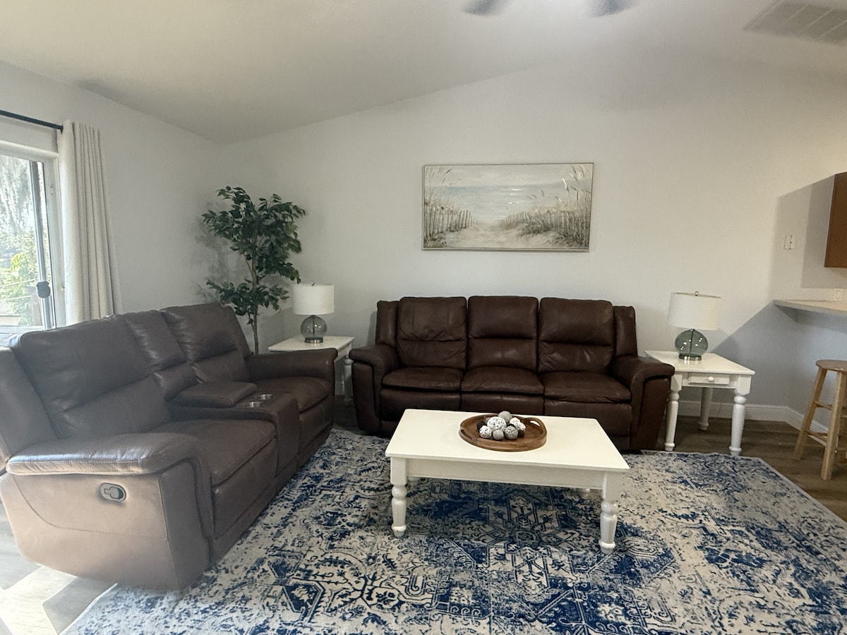 This cozy stylish studio, detached guest house is perfect for short-term or extended stay in the beautiful city of Minneola. Sleeps 2, can accommodate up to 4. Features a large backyard and a fire pit. Close to Downtown Clermont, National Training Center, and 35 minutes to Disney World and other major attractions. This tranquil space features a queen bed with 3" memory foam mattress topper and a spacious living space that has a Multi-Functional Sofa that converts into a Bed.