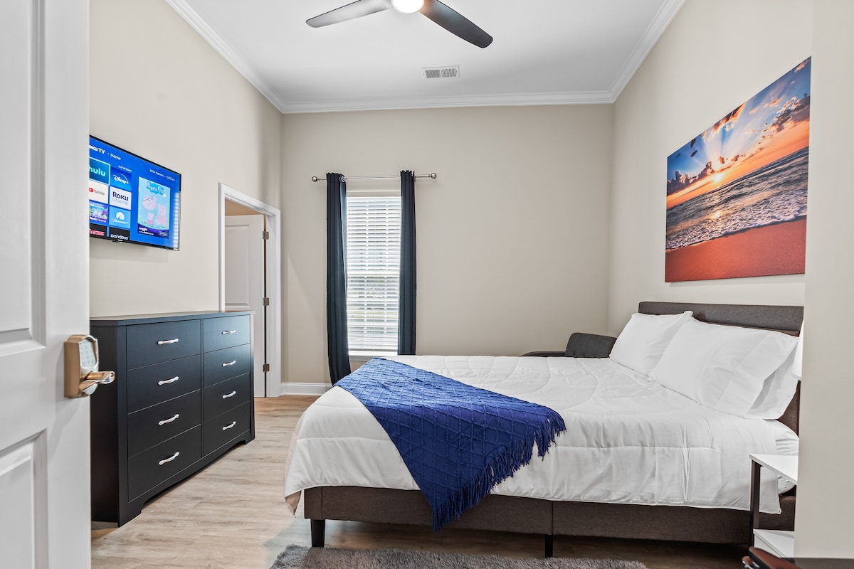 Welcome to our spacious, pet-friendly 4-bedroom home in Kings Mountain, NC, perfectly designed for families, large groups, and coworkers traveling together. With room for up to 8 guests, this home offers comfort, privacy, and modern amenities in a quiet residential neighborhood. The home features a unique two-wing layout, ideal for groups who want space to spread out. Each wing includes 2 bedrooms and a full bathroom, making it perfect for multi-family stays, work trips, or group getaways.