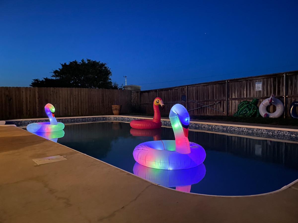 Welcome to Norman Luxe Retreat, just minutes from the University of Oklahoma. This spacious home sleeps 16 guests and offers a private pool, hot tub, and game room for endless fun. Enjoy modern amenities including a Tesla charging station and RV-friendly driveway. Close to Memorial Stadium, Campus Corner, dining, and nightlife, it’s the perfect stay for game days, family gatherings, or luxury getaways. Perfect for families with accommodations such as cribs, bassinets, high chairs & a baby swing.