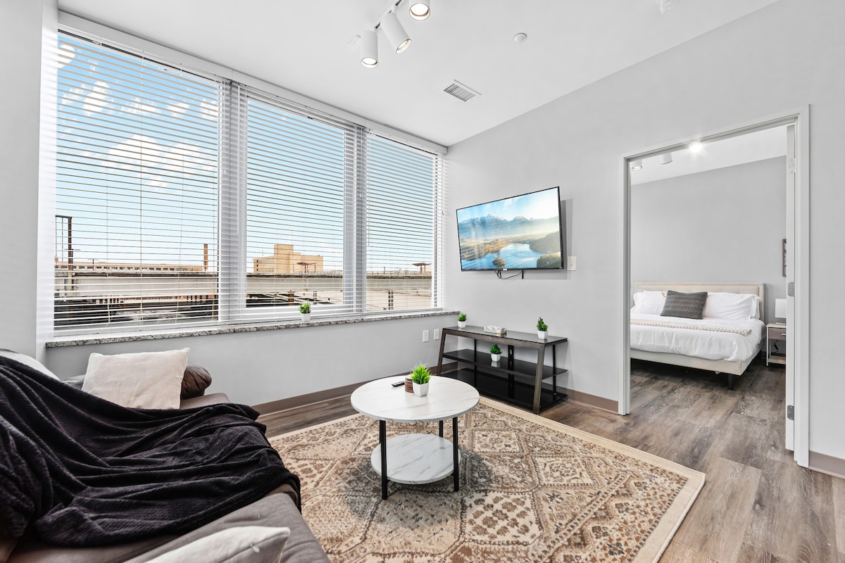Experience downtown Cleveland from this stylish, modern 1BR/1BA loft designed for comfort and convenience • Perfect for couples, concert and game nights, business trips, and weekend getaways • Steps from CSU, Playhouse Square, Rocket Arena, Progressive Field, and East 4th Street dining and nightlife • Relax in a plush king-size bed + Smart TVs in both living room and bedroom • Ultra-fast gigabit Wi-Fi + dedicated workspace • Fully stocked kitchen • Secure garage parking (6.5 ft clearance)