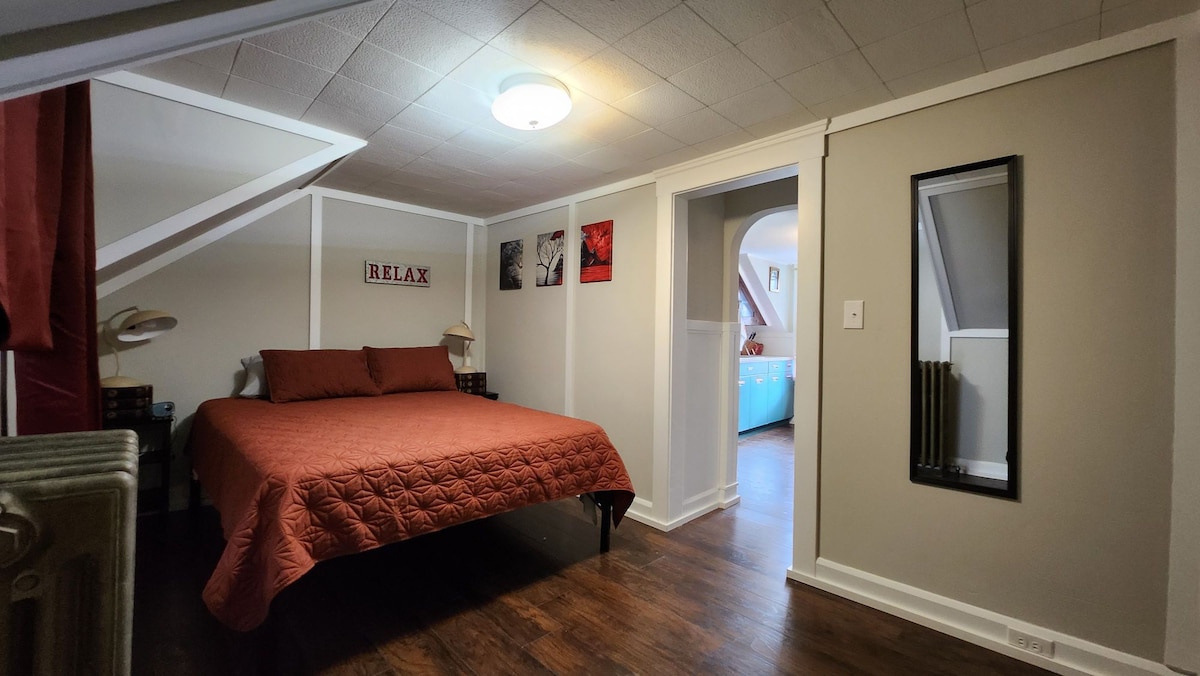 Conveniently located 1 bedroom upstairs guest suite right off I-90. Near the Lorain Antique market strip. 1 minute drive to Gordon Square arts district. 2 minutes to Edgewater beach. A mile to beautiful Ohio city and about 10 minutes to Downtown. Close to Lakewood for all their restaurants and unique shops. This apartment offers all the standard amenities in a colorful old-timey MCM decor to help make you feel right at home. Access through a private back entry via a hassle free electronic lock.