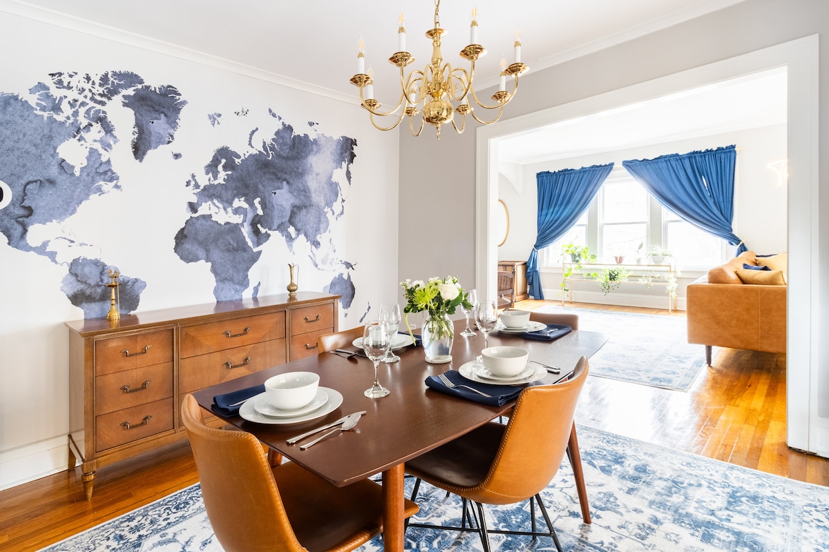 This beautiful home is ready for your stay in Cleveland! Easily accommodates couples, friends, families, and coworkers. Sleeps 10 people. Great location in Gordon Square Arts District located 5-10 minutes to downtown, 15 minutes to airport & University Circle. Short walk to Edgewater Beach & lakefront. Elegant details and charm throughout. Full kitchen, large dining room & foyer, living room w/TV and streaming. Stylish interior w/hardwood floors. Two full baths. Laundry & off-street parking.