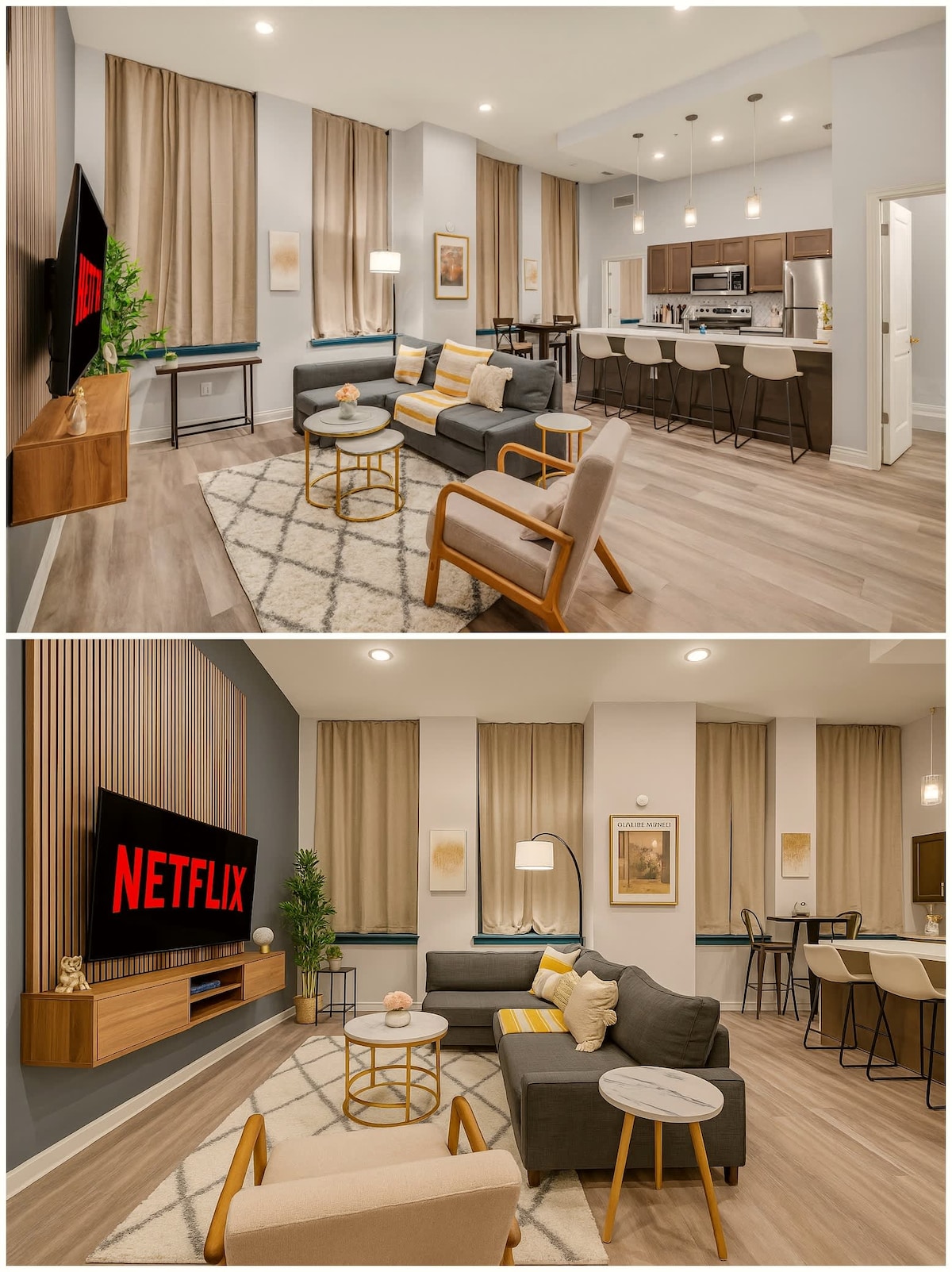 From the co-founder of Joshua Tree’s acclaimed Hata Retreat comes Cleveland’s most stylish Airbnb. This thoughtfully designed home blends luxury with personality. Rotate between the sauna and hot tub, relax with a cold beer under the patio umbrella, shoot pool in your private speakeasy, or sink into the huge couch for a movie on the 80” screen. Under 7 minutes from major stadiums, it’s the perfect home base for fans and design lovers.