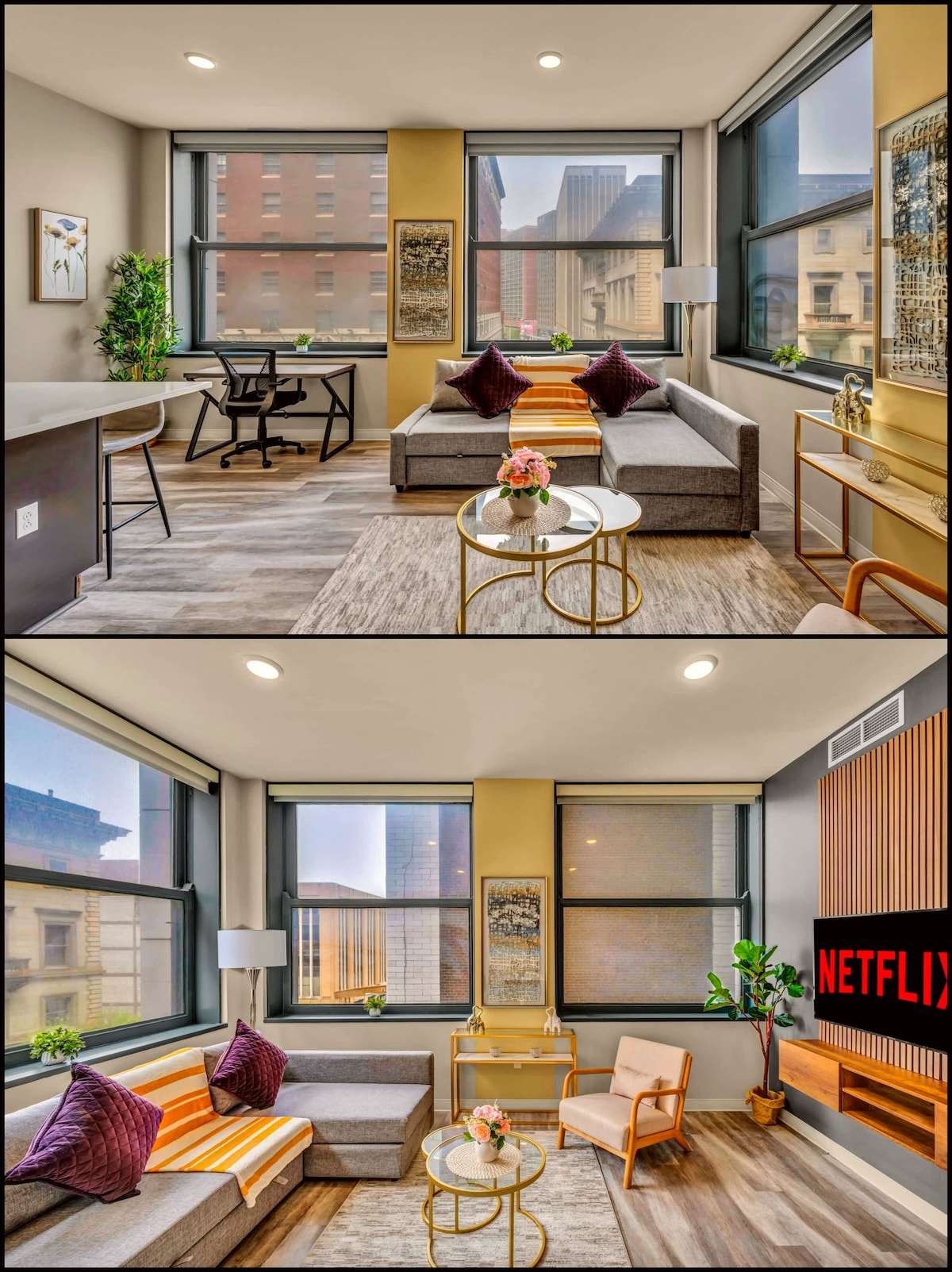 Welcome to your Home in Cleveland! Located in a historic building in the heart of downtown, you’ll feel the city's charm while having all the modern amenities you need. ➹ Spacious Downtown Loft ➹ FAST 100mb Wi-Fi for work or streaming ➹ 24/7 Gym with sauna and tanning bed ➹ Memory foam beds for a great night's sleep ➹ Smart TVs for your favorite shows ➹ Fully stocked kitchen We genuinely LOVE hosting and want your stay in Cleveland to be amazing — reach out with any questions!