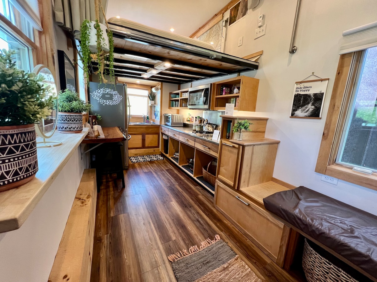 Perfect for a romantic or solo getaway, a sight-seeing trip, or just passing through! This 360 square foot tiny home feels spacious and is convenient with the one story floor plan, high ceilings, natural light, and basic amenities for your stay. There is NOT a TV but there is high speed WiFi is for use on your own device! Just a few minute drive from Tryon and Landrum for dining/ shopping, and plenty to do in the area or just relax and enjoy the beautiful farm!