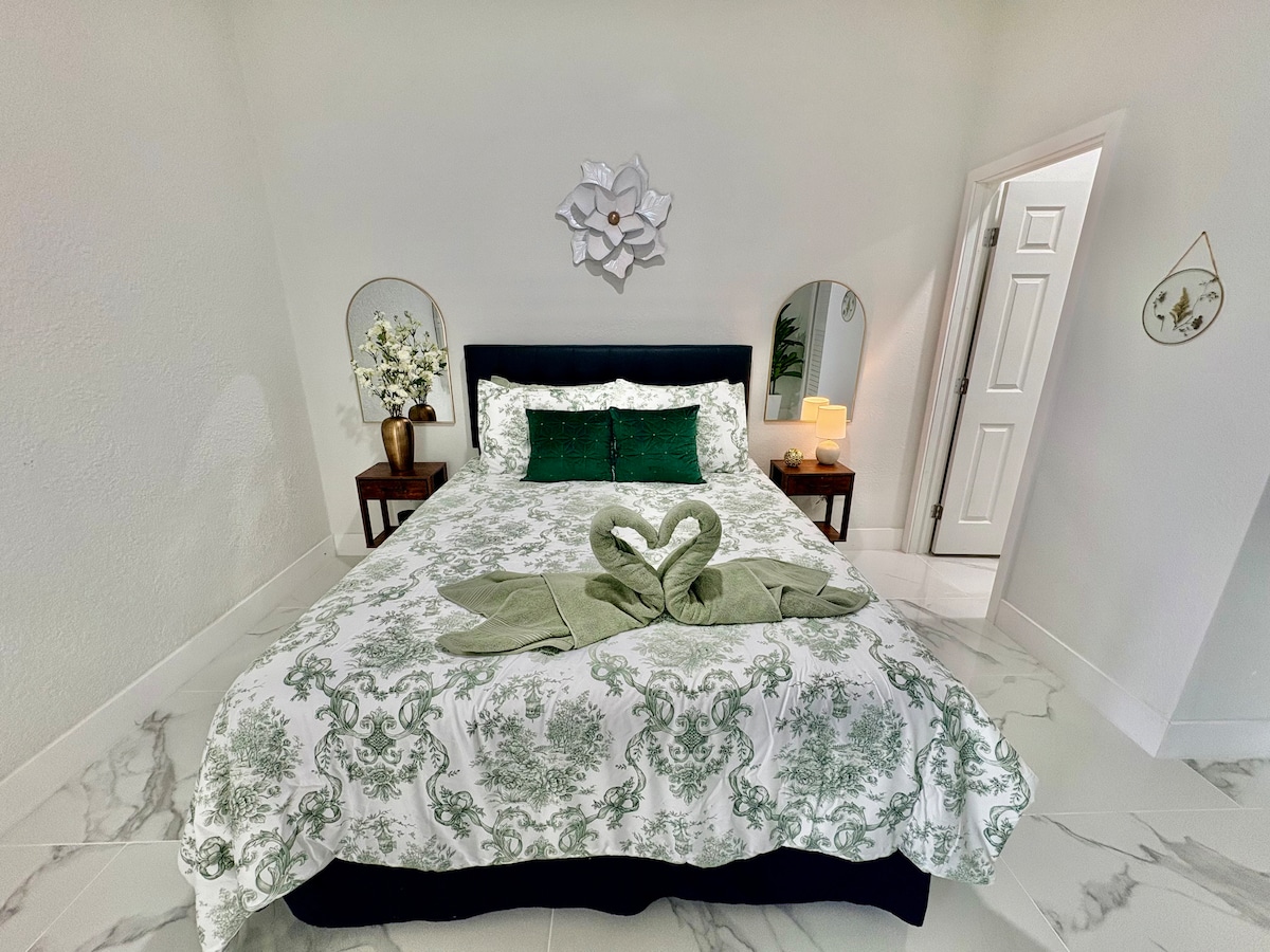 Gorgeous, a beautiful sparkling clean suite! 1 full bed & 1 sofa bed. The suite has a private patio with a beautiful garden and a private parking. Best area of lehigh Acres, quiet and safe! With just minutes away to major supermarkets, banks, car services, laundry mats, post office, all types of restaurants, a hospital, a public pool, gyms, parks 45 minutes to different beaches, shop in the best outlet stores in South West Florida. Everything you really need is near by.