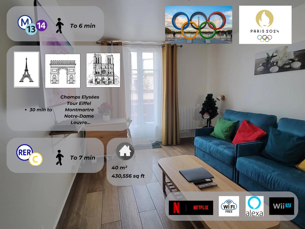 Picture this… You climb the stairs of a quintessential Parisian building (2nd floor, no elevator, just 4 apartments), key in hand, ready to step into your cozy 409 sq ft nest for the next few days. The moment you walk in, a wave of serenity washes over you every detail is designed so you feel right at home, instantly. It’s the perfect starting point to explore Paris and its suburbs: just a 2-minute walk from the train station, and you’ll effortlessly reach the city center and La Défense.