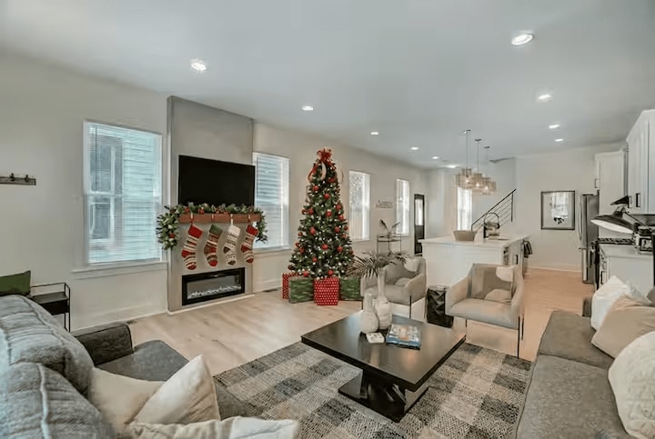 Dive into comfort at our spacious 4-bedroom haven that comfortably sleeps up to 12—ideal for families or groups seeking both city vibes and homey comforts. Unwind in our open-concept space, perfect for game nights in the top-of-the-line arcade room. Step out to the expansive back deck; it’s your go-to for BBQs or evenings spent by the fire pit, creating lasting memories. Don't forget the private hot tub! It’s the ultimate spot for relaxation, star-gazing, and enjoying some quiet time.