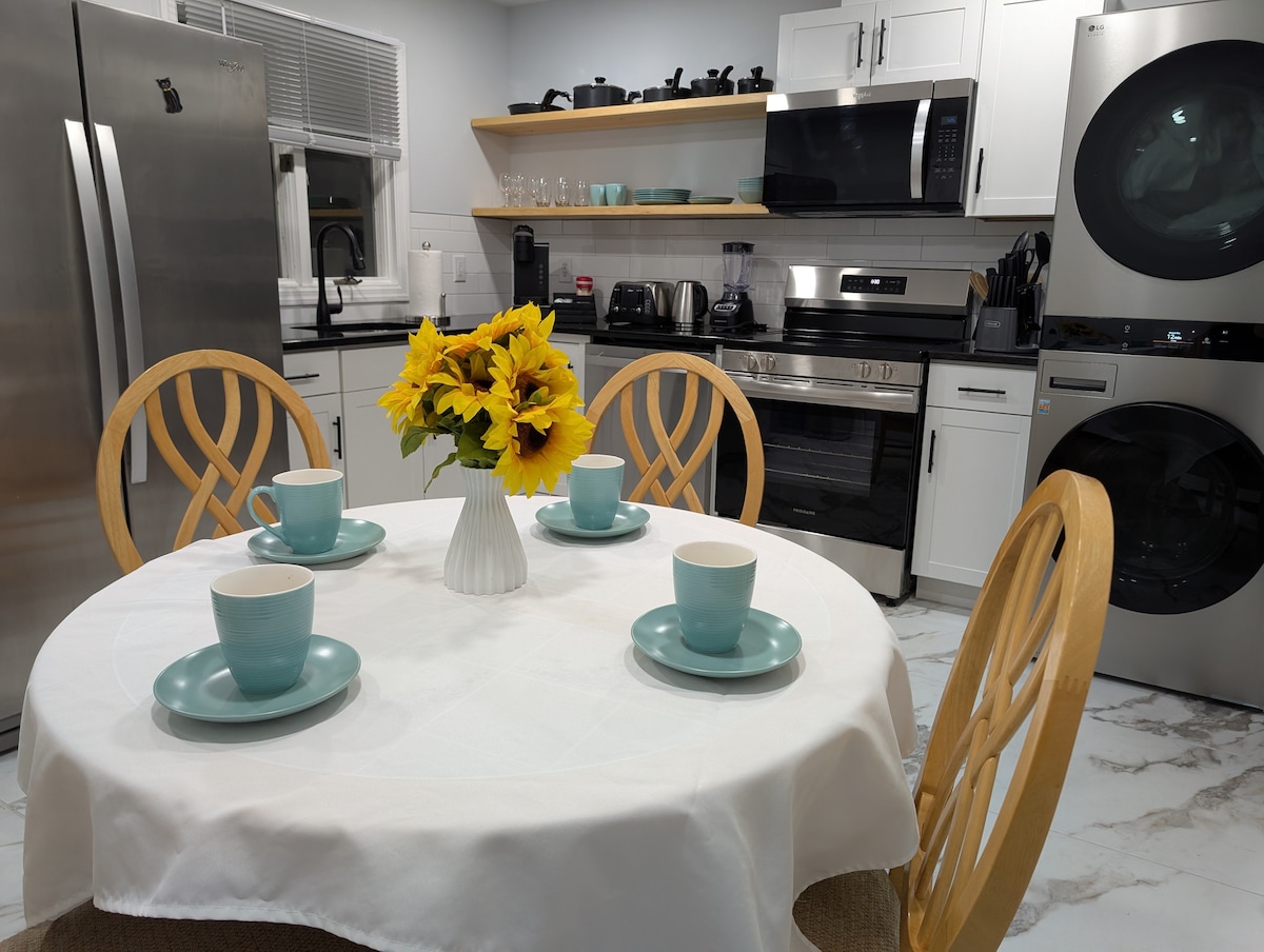 ⭐Perfect for Couples and Solo Travelers! ✅ King Bed with Blackout Curtains ✅ Dimmable Bedroom Lights ✅ Bedside Lamps (with USB charging) ✅ Relaxing Soaking Bathtub ✅ Washer & Dryer ✅ Full-Length Mirror ✅ Full Kitchen ✅ Towels, Soap, Shampoo & Toiletries ✅ Toiletries ✅ Hair Dryer & Iron ✅ Coffee / Tea ✅ Electric Kettle ✅ Fast Wi-Fi ✅ Dedicated Work Desk ✅ 55-Inch Smart TV with Netflix ✅ EV Charging ⭐ Experience comfort, convenience, and a touch of luxury — book your stay today!