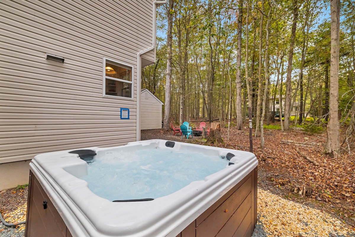Latitude Adjustment is a unique retreat in Pocono Lake, designed for those who seek the perfect blend of relaxation and local exploration. Equipped with an amazing 4person outdoor steam sauna, a private 7person hot tub featuring waterfall, Bluetooth speakers, and LED lights, huge game room with 65” TV, wood burning stove, large outdoor entertaining area with a grill, fire pit, guest shed and dining area. Located in a beautiful, amenity-rich Arrowhead Lake community, 1 minute walk to the lake!