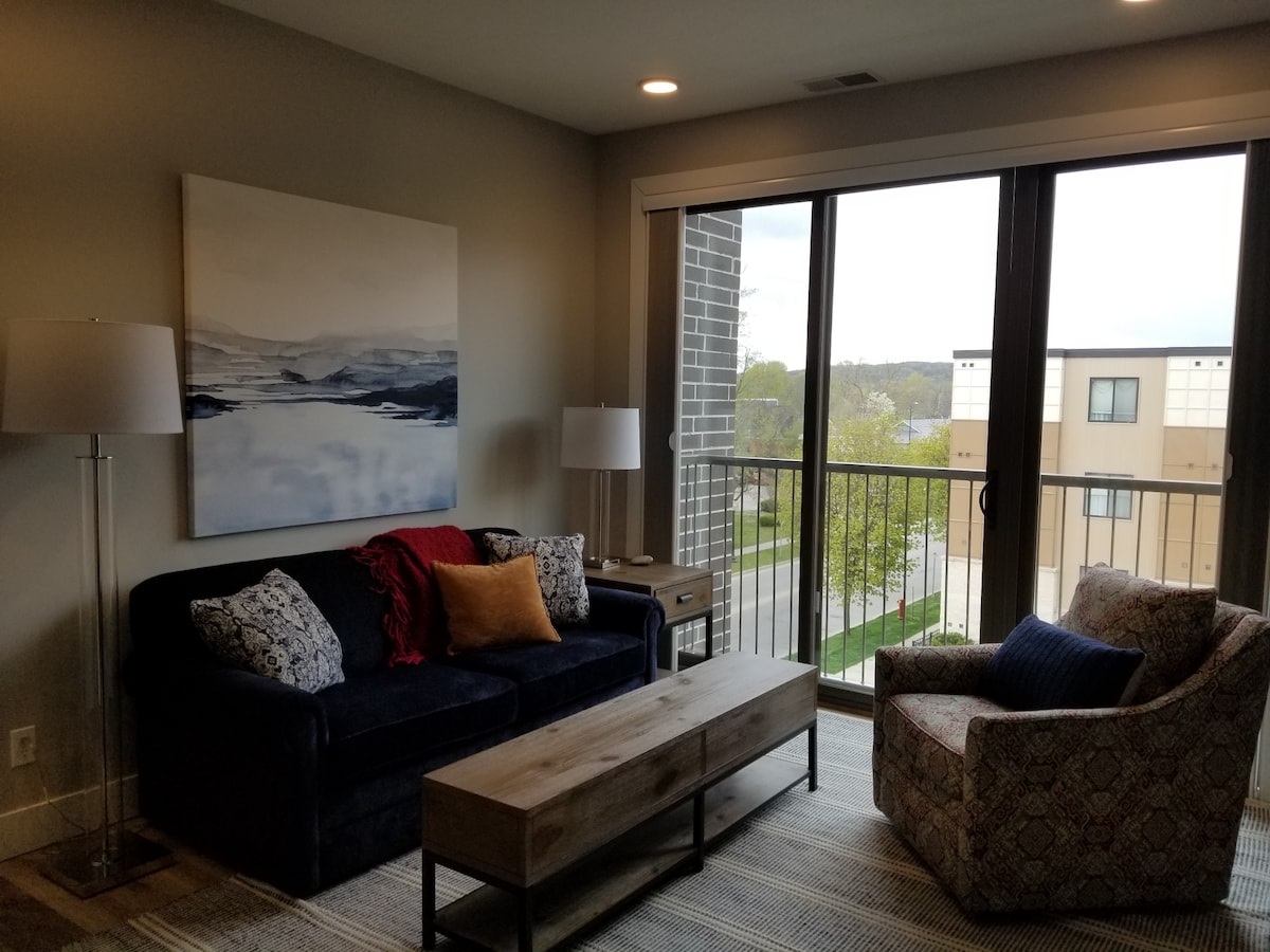 BRAND NEW top floor condo in the Modern on State condo building on E. State Street for a perfect couple get away. Features a super comfortable king sized bed, a full kitchen w/ amenities, a wonderful living room space with a comfy leather love seat and sitting chair, cable TV with a 50” TV, and great wireless internet. Our condo also features an in-unit washer and dryer, and we’re also pleased to provide a private parking spot, to guarantee you free parking.